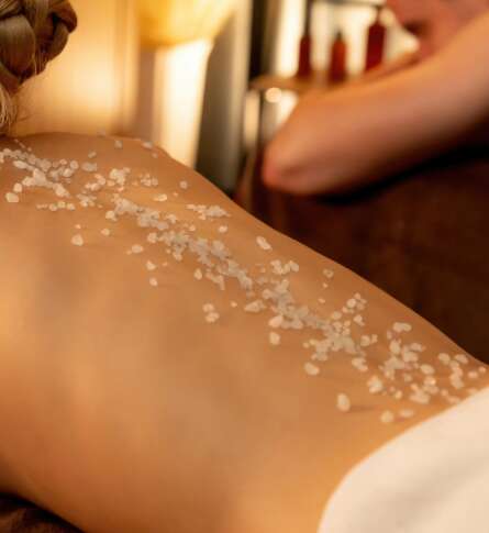 Un gommage tonique réalisé à deux, associant sel marin, lotus sacré et criste marine pour exfolier, lisser et raviver l’éclat. Le duo profite côte à côte d’un soin vivifiant qui stimule la microcirculation et apporte douceur et luminosité à la peau.